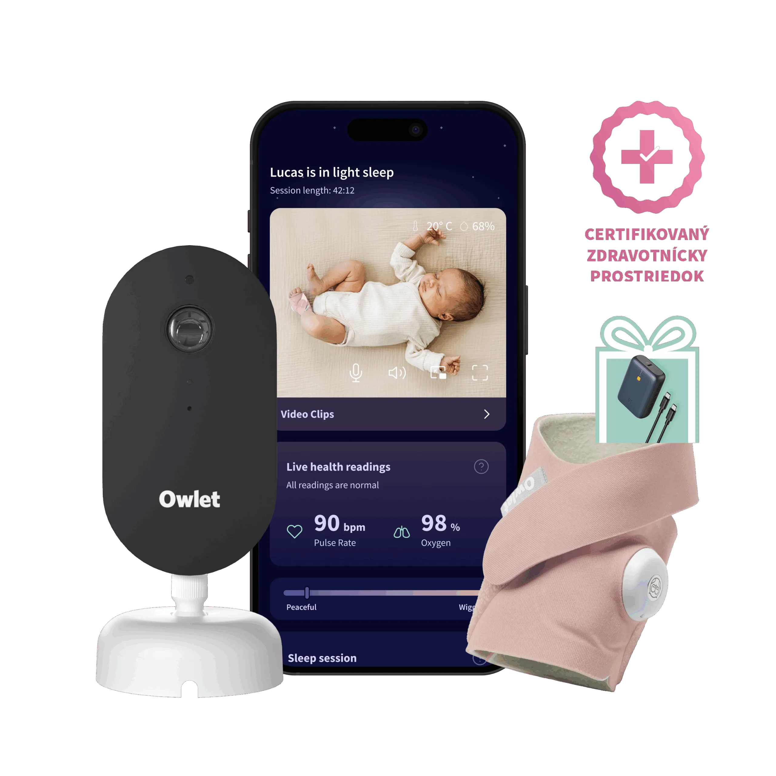 Owlet Dream Duo™ (3. generace) je najkomplexnejší systém monitorovania bábätka na trhu – spája zdravotne certifikovaný senzor Dream Sock®, inteligentnú HD kameru Dream Sight™ a aplikáciu Owlet Dream App do jediného komplexného riešenia.