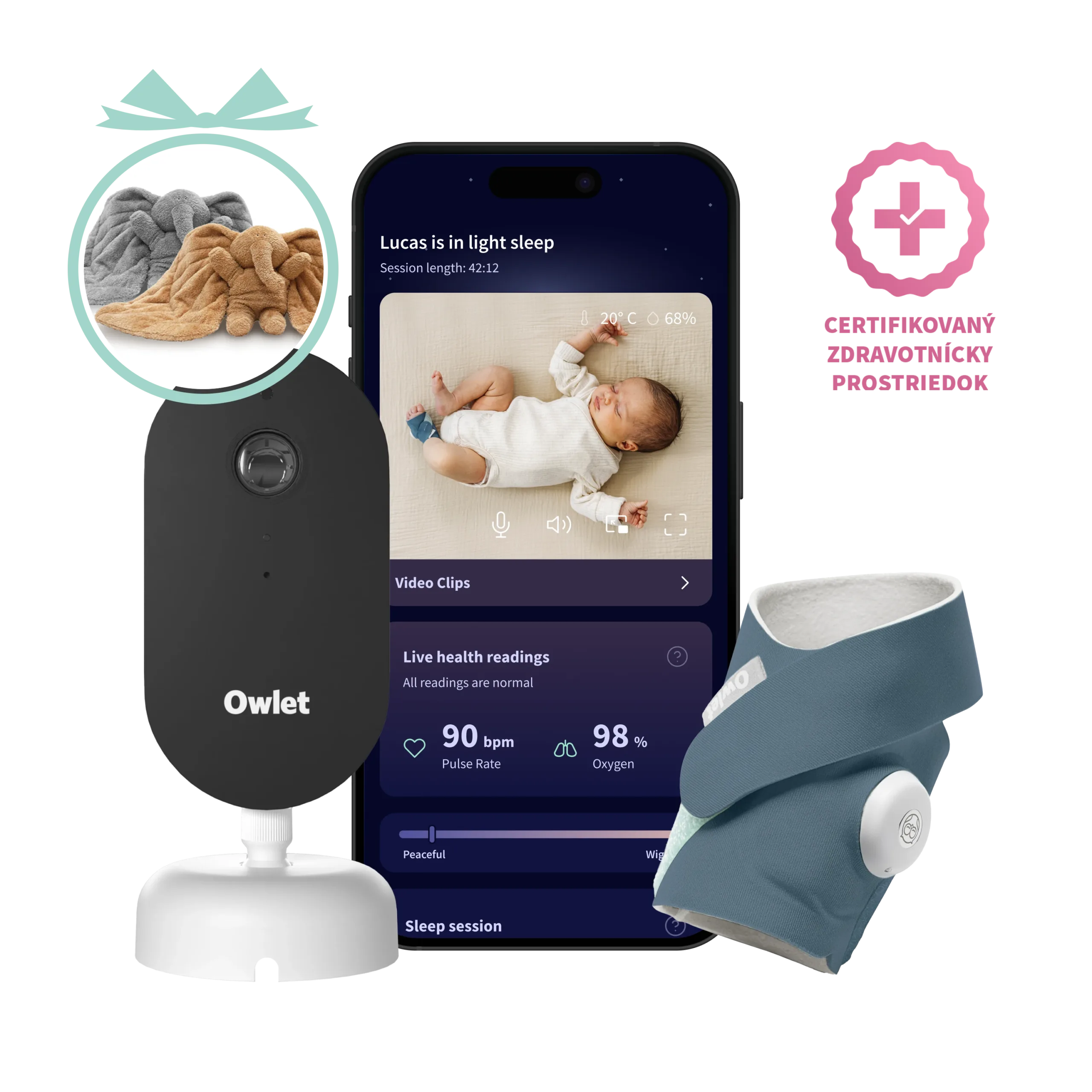 Owlet Dream Duo™ (3. generace) je najkomplexnejší systém monitorovania bábätka na trhu – spája zdravotne certifikovaný senzor Dream Sock®, inteligentnú HD kameru Dream Sight™ a aplikáciu Owlet Dream App do jediného komplexného riešenia.
